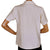 This is a late 1960s or early 1970s era pure silk short sleeved blouse made in China. The blouse is embroidered in a grey floral design against a light cream white background. The collar is long and pointy, in keeping with the style of the time.