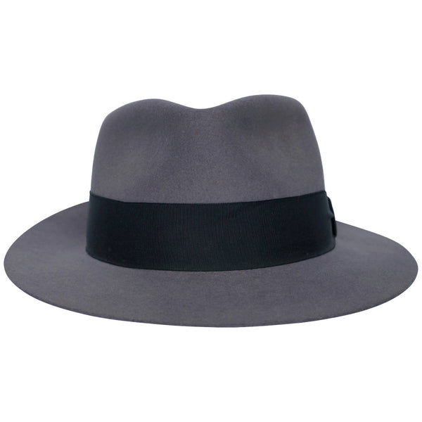 This is an official Indiana Jones fedora hat made by Stetson under license from Lucasfilm. The hat is made in a very good quality grey wool felt. The crown has a black grosgrain band and bow around its base. The hat has a label affixed to the interior top that reads “Indiana Jones Authentic Hat TM & C 1984 Lucasfilm Ltd. (LFL). All Rights Reserved. John B. Stetson Company Authorized User”. It is unlined and has a stitched black satin cloth sweatband. It is sized as “X-Large” - it measures 23 7/8” around the sweatband and 7” by 8 1/4” across the opening. The brim measures 2 1/2” in width at the front and the crown measures 4 1/2” in height. The hat is in very good condition with no wear, tear, staining or odour - one pinhead sized dark spot on the top of the crown, really minor, and otherwise clean and ready to wear. This is a great looking hat - nice style and colour in a size extra large!